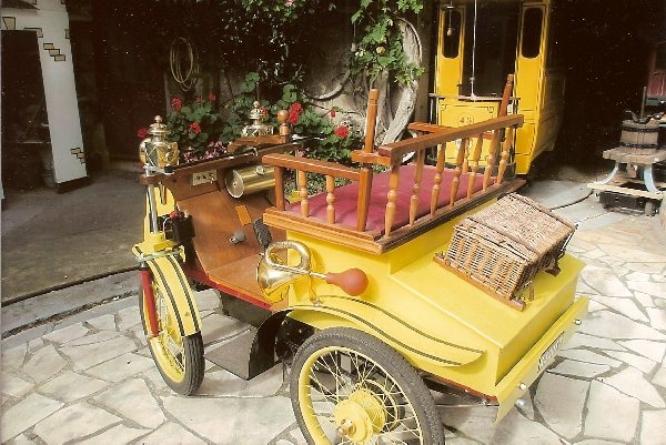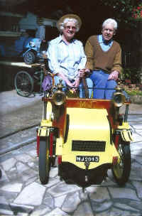 Michel et son épouse Paulette en belle tenue juste pour aller au marché de Chaville. Le bolide peut filer à 12 ou 20 Km/h.
