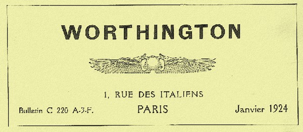 Worthington" lors de sa création en 1892. Cette société exploita les brevets des pompes duplex plus performantes que le procédé classique de pompes à volants. Le champ d'application de la Société s'étend sur tous les domaines de fluides : eau, air, vapeur, etc.