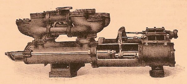 sur les pistons à vapeur est directement transmise aux pistons à eau par