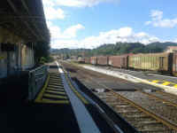 Un train complet de bois et de copeaux attend. On le croisera au retour dans une