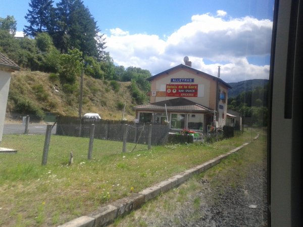 À l'aller le train ne marque pas l'arrêt aux stations d'Alleyras et de