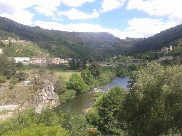 avant d'entrer en gare de Langogne le pont sur l'Allier de l'ancienne ligne