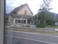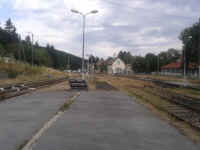 À gauche ce qui je suppose reste du bâtiment voyageurs. Cela dit il n'y a aucune trace