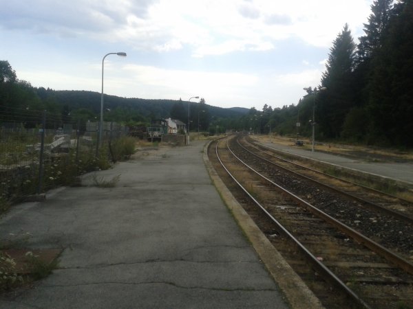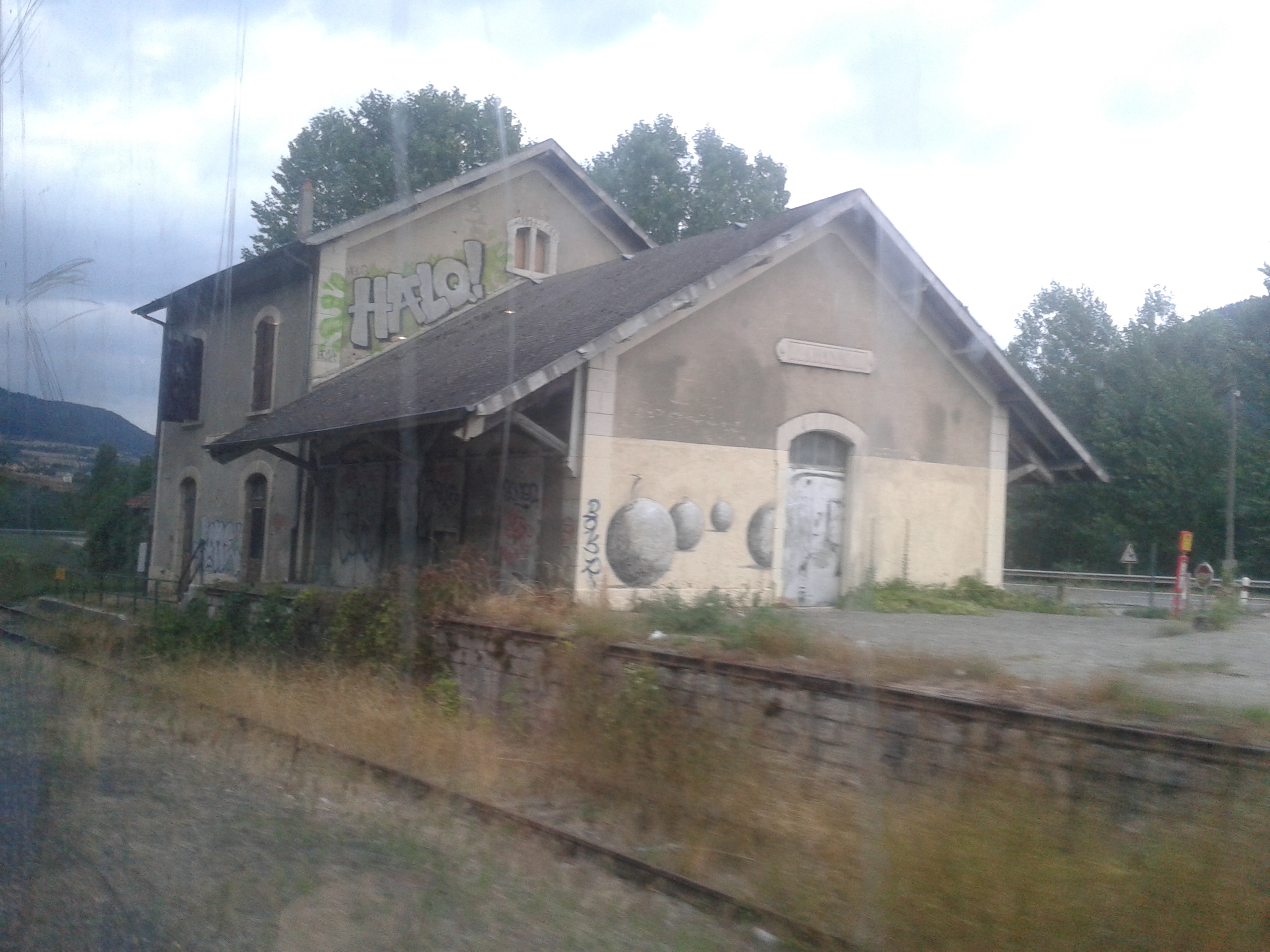 gare abandonnée par le service que nous laissons sur notre gauche.