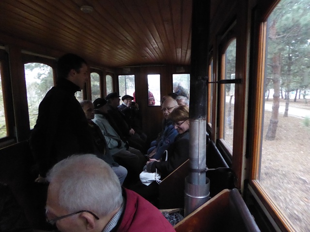 voiture fermée V-10 de 24 places dont le poêle à bois a été allumé pour la