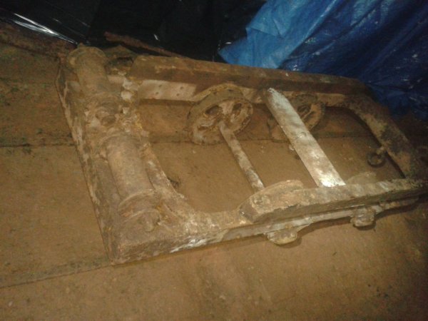 (500 mm.) en rail de 12 Kg/m est apparue, noyée dans le sol boueux. Nous