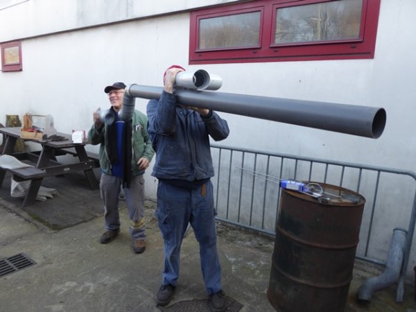Alain A. et Jean-Pierre C. ont commencé la mise en place du piquage sur la