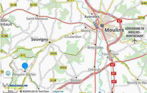 à une vingtaine de kilomètres au Sud-Ouest de Moulins.
