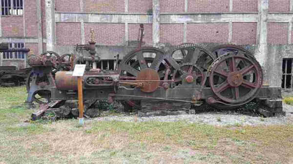 ici une machine d’extraction rapatriée d’un des puits des environs...