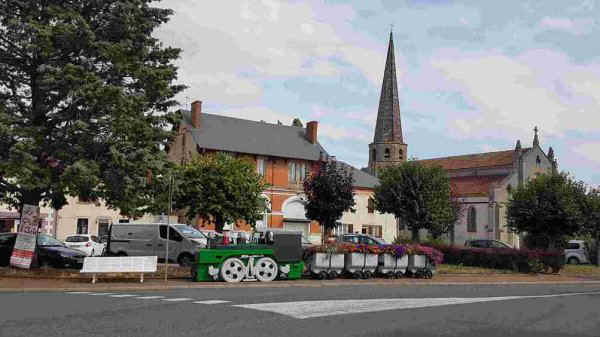 Sur la place du village, ce train de berlines rappelle le passé minier la