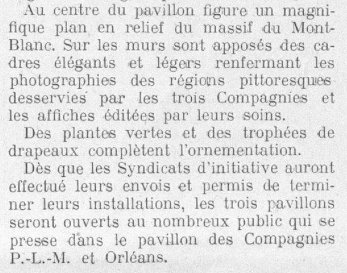 Pour le public, le PLM a mis en circulation, jusqu’à la déclaration de guerre, des « trains de plaisir » accessibles avec des tickets à tarif réduit couplés avec des billets d’accès à l’exposition depuis les grandes villes qu’il desservait.