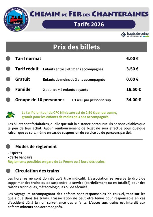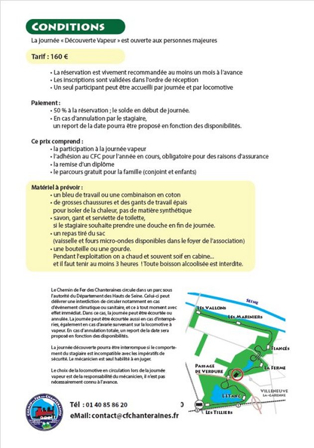 de Fer des Chanteraines 46, avenue Pompidou F-92390 Villeneuve-la-Garenne Tél / Fax: 01 40 85 86 20 web : http://www.cfchanteraines.fr/ E-mail : contact@cfchanteraines.fr |