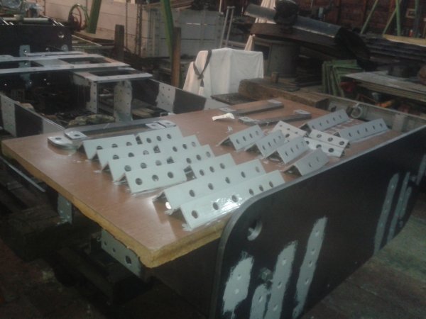 sur le châssis pour la mise en peinture de l'ensemble des cornières et pièces