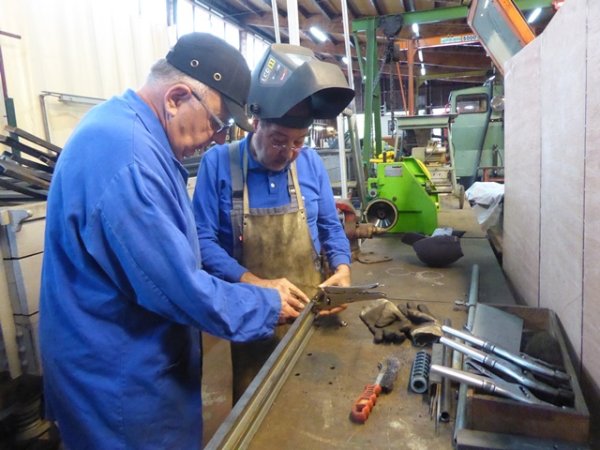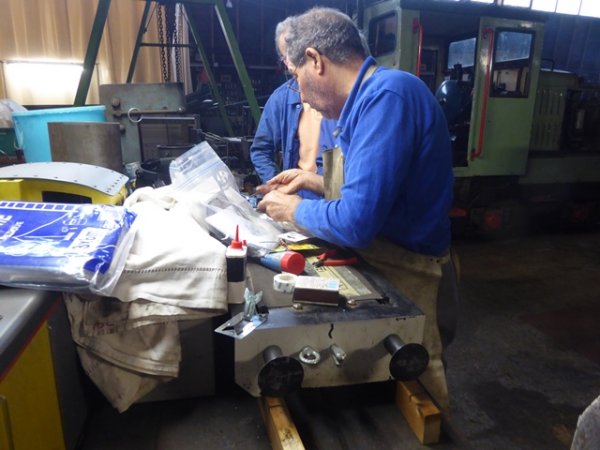 Pendant que Jean-Pierre L. assemble des peignes, Jean-Paul B. et Jean-Pierre C.