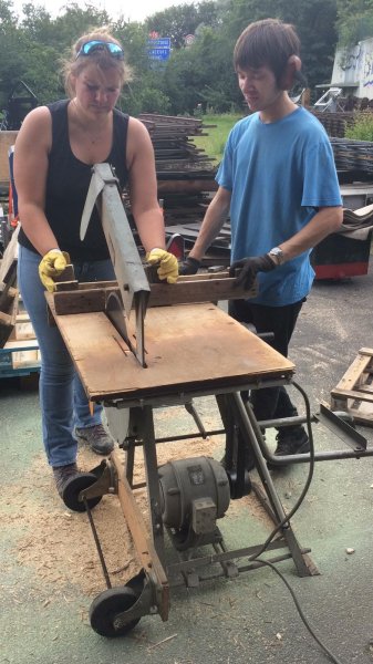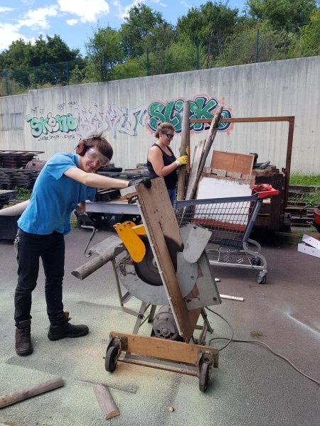Jean-Paul B. et Lemziti S. continuent le chantier du mini-CFC avec la découpe