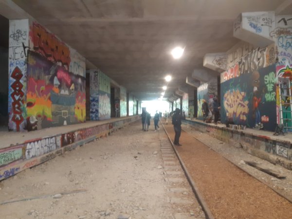 Coté Est au contraire on a accès à l'ancienne gare qui a reçu un chape de
