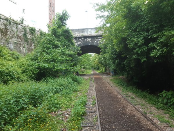depuis la fermeture (et non l'abandon), a envahi la tranchée et la voie
