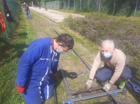 Une équipe de taupiers formée de Alain B., Michel G., Louis P., Jean-Paul B., Jean-Michel et Michel B., est partie sur la voie l'après-midi pour intervenir sur plusieurs signalements remontés ces dernier temps. Plusieurs éclisses ont été resserrées, l'écartement a été repris à un endroit, deux agrafes métalliques ont été posées de chaque côtés du passage à niveau du poney-club, la terre a été tassée... c'est une goutte d'eau mais c'est toujours mieux !