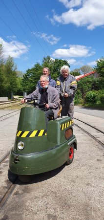 Pierre M. et Jean-Claude ont installé le nouveau klaxon sur la Tromobile.
