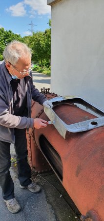 Philippe B. qui les a rejoints a décapé la calandre recouverte d'une peinture grise qui cachait le