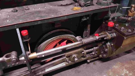 Il a également repeint en rouge les couvercles de graisseurs de l'embiellage de la Bertha ainsi que les volants de manœuvre des vannes en cabine