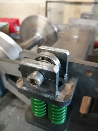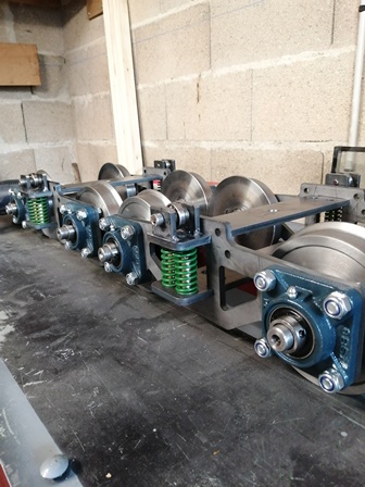 caisse/bogies est installé avec les pièces préalablement préparées, l’ensemble est soudé sur la traverse danseuse de chaque boggie, les roulements à billes assurent le contact avec la caisse.