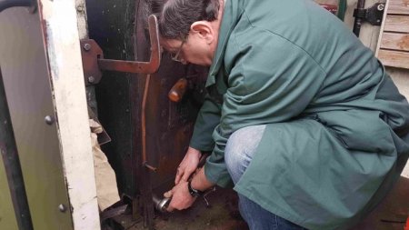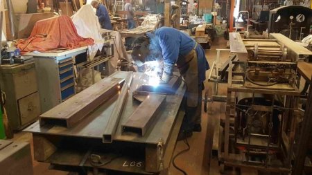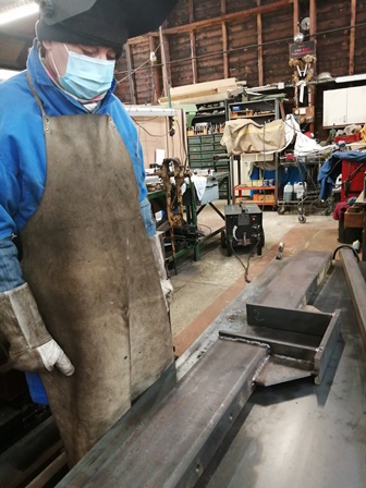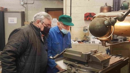 Michel L. termine le rainurage des boîtes d’essieux du locotracteur de Jean-Claude H.