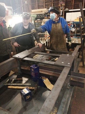 La construction des bogies de l’automotrice électrique Decauville n°28 de François B. avance bien. Après les soudures des équerres de renfort, Lemziti S. a commencé l’assemblage boulonné des flancs et des traverses conformément aux plans. L’ensemble commence à peser lourd, il va bientôt falloir envisager de passer sous le