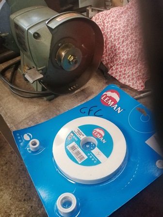 La meule d’affutage des outils carbure de l’espace machines-outils est arrivée. Gérard B. l’installera sur le touret réservé à cet effet.