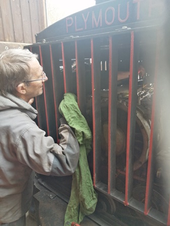 François entreprend le même travail sur la 030T O&K n°19 et c'est Jean-Pierre qui profite de la formation... mais là c'est plus simple, les bouchons de cadre sont à joint cuivre, une peu de graisse Belleville suffit avant un serrage "à bonne main d'homme".