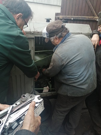 L’alternateur du petit gris 0B0-11 semblait poser un problème car la charge de la batterie ne se fait pas correctement. Celui-ci a été démonté par François B., aidé de Pierre M et Jean-Pierre La. pour le passer au banc chez notre fournisseur. Nous verrons ainsi s’il s’agit d’un problème d’alternateur, de batterie ou de câblage.