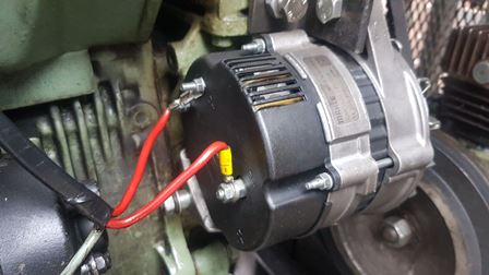 ... et c'est Pierre, encore, qui vient me donner un coup de main pour tester l'alternateur du "petit gris" (O&Kn°11) dont la batterie ne se recharge pas. Comme cet alternateur est neuf, nous le démonterons pour le confier au fournisseur pour passage au banc de test.