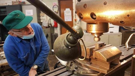 ... et bien sûr, après la réflexion, l'action : Michel se concentre sur les manettes de la fraiseuse "Airbus".