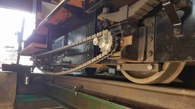 La chaîne Le mécanisme sera protégée sur le dessus par un marche-pied filant sur toutes la longueur du châssis, un peu comme nos baladeuses SOCOFER et le tracteur