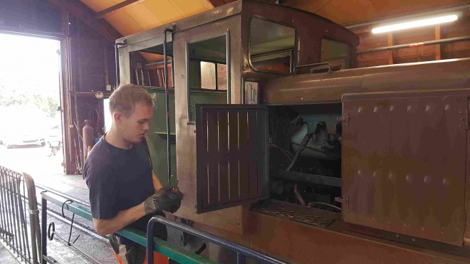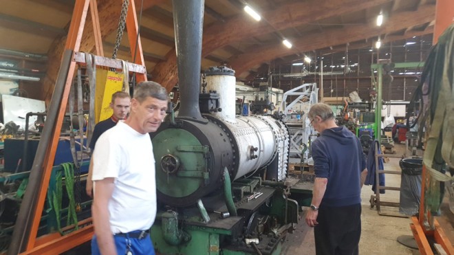Après ce travail minutieux, Baptiste se met au salissant : le lavage de la chaudière de la