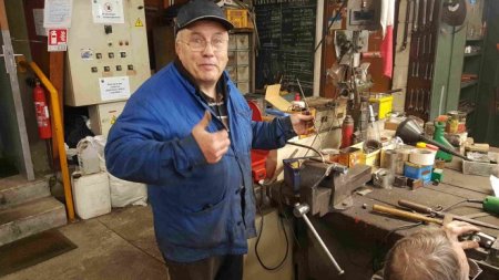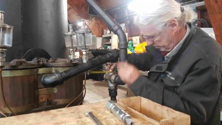 François lui prête la main en refaisant les brasures du tube d'évent de