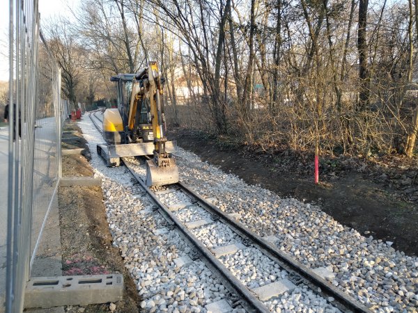 La nouvelle voie prend par endroits son aspect final, ici entre le dépôt
