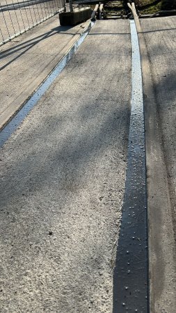 Dans l'après-midi une gomme a été coulée dans la fente entre le rail