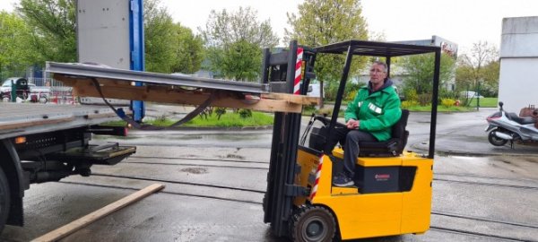 Elle a été déchargée par Pierre M. aux commandes du chariot élévateur. (photo Jean-Claude H.)