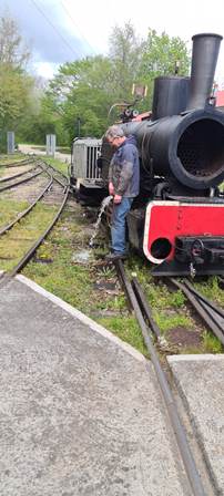Humour ! C’est bien la vidange de la chaudière de la 030T-06 Chanteraine que Pierre M. est en train de faire, bien qu’on pourrait croire autre chose !