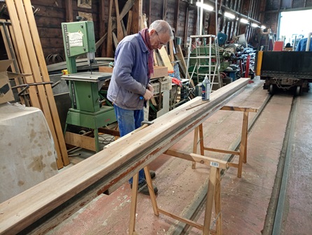 Jean-Paul B. continu le ponçage des boiseries des deux dernières baladeuses qui seront aménagées pour l’accès