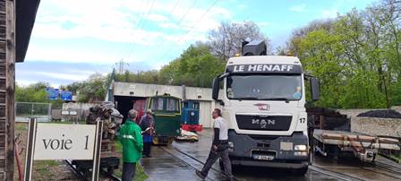 Aujourd’hui, c’est le départ des deux locotracteurs T-21 et T-22 CACL et du moteur de Jean-Luc F. Ce matériel est parti vers d'autres rails au Chemin de fer de "Bon Repos"... (photo Jean-Claude H.)
