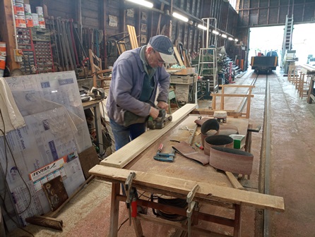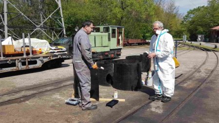 Jean-Paul s’affaire au ponçage des bois des deux dernières baladeuses qui sont encore chargées du sable des essais des locotracteurs électriques. Des essais complémentaires doivent être effectués prochainement et nous obligent à maintenir chargées ces baladeuses.