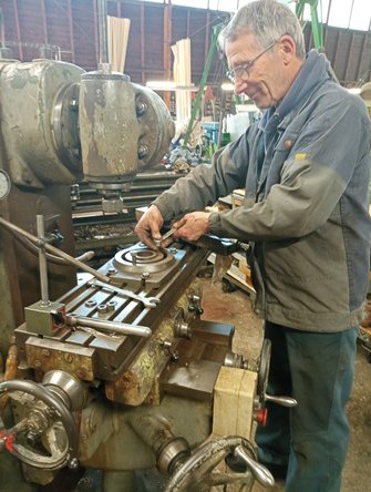 cours avancent : Gérard continue inlassablement l'usinage de roues pour le CFC-Mini...