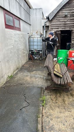 Dimitri B. et Michel B. se sont « attaqués » au nettoyage haute pression de notre espace de repas extérieur.