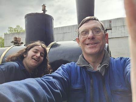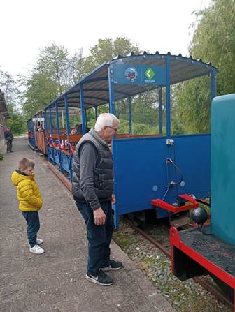 Pas d’usinage ni de tournage aujourd’hui, Gérard B. profite de son petit-fils et lui enseigne les bases du chemin de fer.