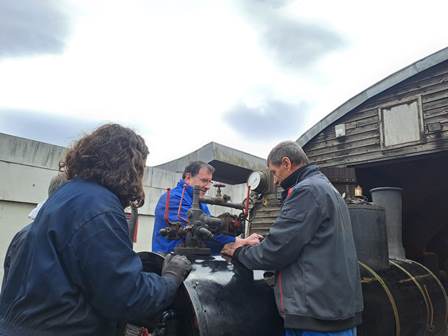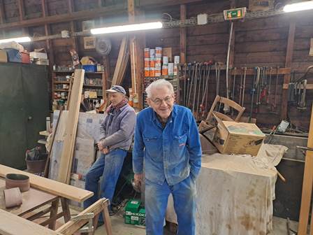L’équipe de Jean-Claude H., avec Jean-Pierre L. et Pascal, fait les finitions de l’0B0-03.