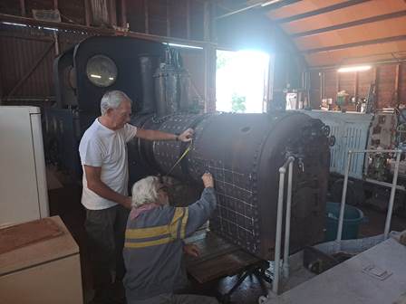 Michel G. installe les nouvelles cannes d’aspiration avec l’aide de Philippe D.