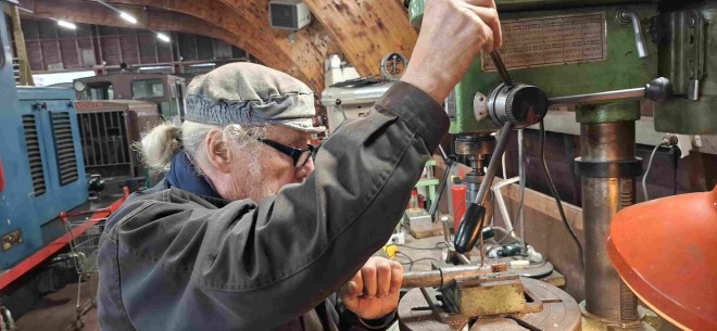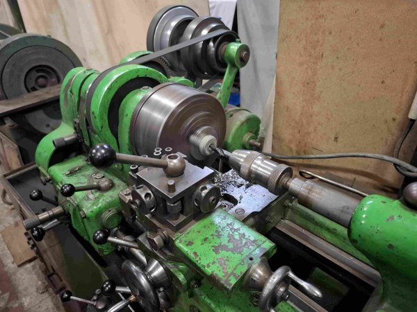 - travail de Gérard sur le tour pour l'usinage des chevilles ouvrières des
