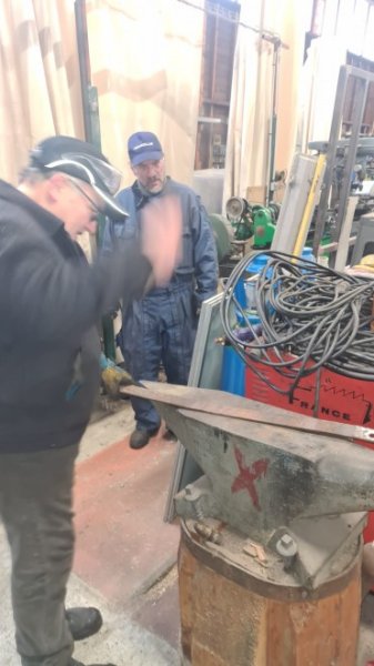 François termine le redressage marteau et à l'enclume... Jean-Claude fera encore